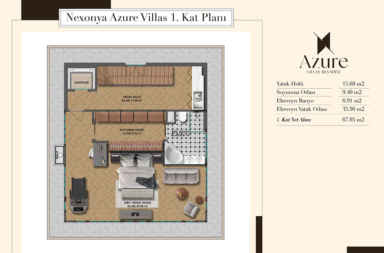 Виллы Nexonya Azure расположены в тихом районе Reşadiye Чекмекей, Стамбул, в окружении пышных лесных ландшафтов. Проект состоит из 20 роскошных трехэтажных вилл, каждая из которых предназначена для сочетания природы, конфиденциальности и современного комфорта. Этот проект, разработанный Nexonya, обеспечивает престижный образ жизни для семей, ищущих уединенный, но хорошо связанный адрес.
