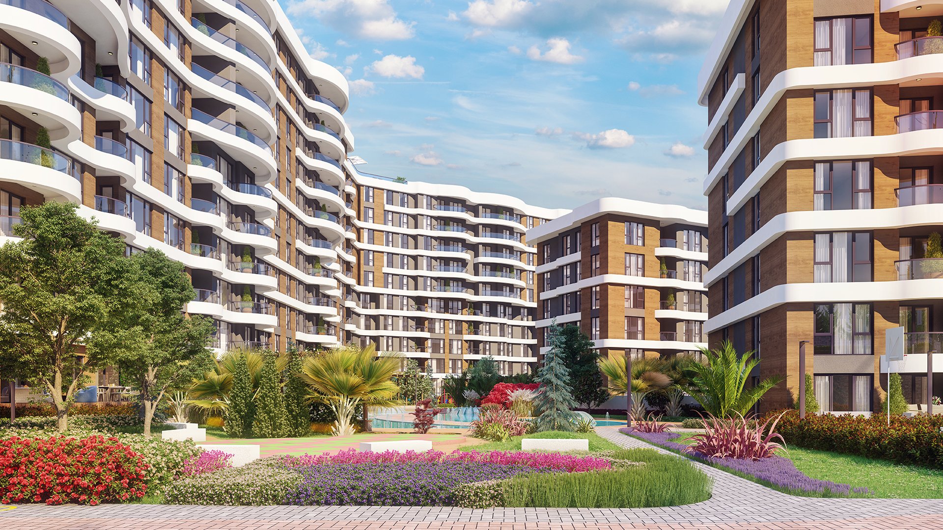 Архитектура охватывает современную эстетику и функциональность. 65% земли посвящено зеленым зонам, социальным объектам и открытым удобствам. Стандарты качества соответствуют турецким строительным и сейсмическим кодам, в комплекте с наземными исследованиями и соответствием изоляции.