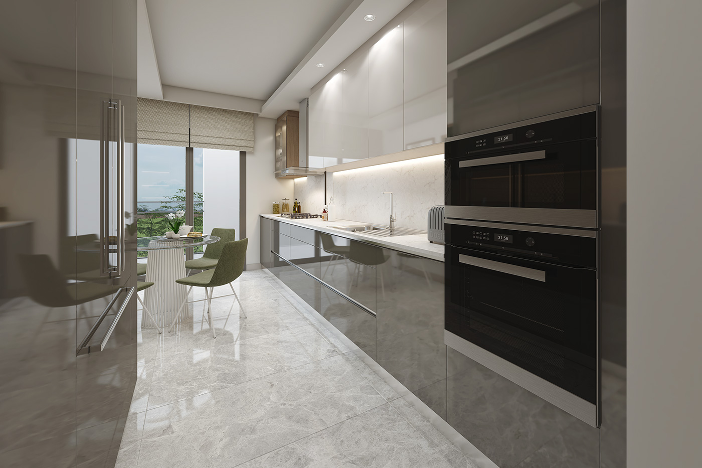 Особенности Living Space Проект предлагает различные типы блоков, включая макеты 1+1, 2+1, 3+1 и 4+1, с размерами сети от примерно 85 м2 до 218 м2. Просторные интерьеры, высокие потолки и большие террасы или балконы предназначены для максимального естественного освещения и обзора. Инфраструктура умного дома, кухни премиум-класса и функциональные планы этажей улучшают современную городскую жизнь как для семей, так и для инвесторов.