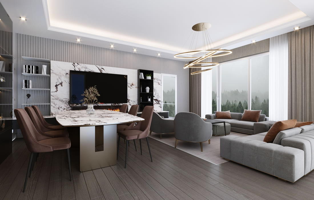 Архитектурный дизайн проекта включает горизонтальную, малоэтажную концепцию, которая гармонирует с естественным склоном района. Оба этапа построены с акцентом на долговечность, сейсмическую безопасность и эстетическую интеграцию с зеленым окружением. Современные материалы и современная отделка используются во всех зданиях, обеспечивая долговечность и визуальную привлекательность, поддерживая мирный, ориентированный на сообщество образ жизни.