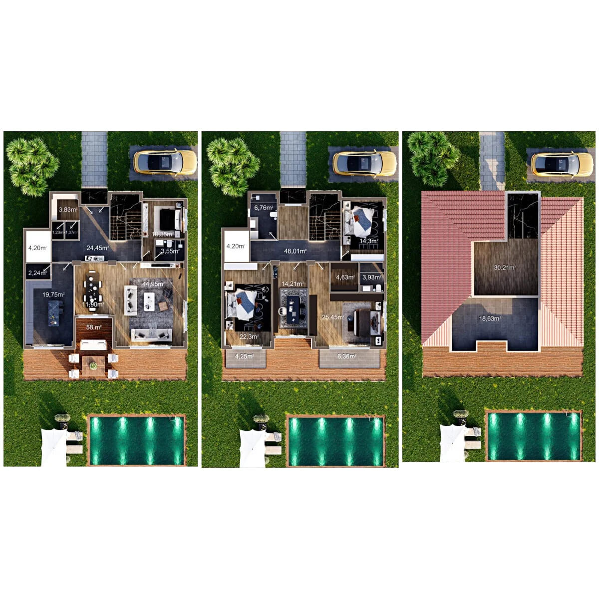 Каждая вилла предназначена для обеспечения достаточного жилого пространства, включая несколько спален, современные кухни, оснащенные премиальной техникой, а также большие жилые и обеденные зоны. Интерьеры продуманно спланированы, чтобы сбалансировать функциональность и эстетику, обслуживая как повседневную семейную жизнь, так и развлекательных гостей. Частные сады и террасы еще больше улучшают жизненный опыт, легко соединяя внутренние и открытые пространства.