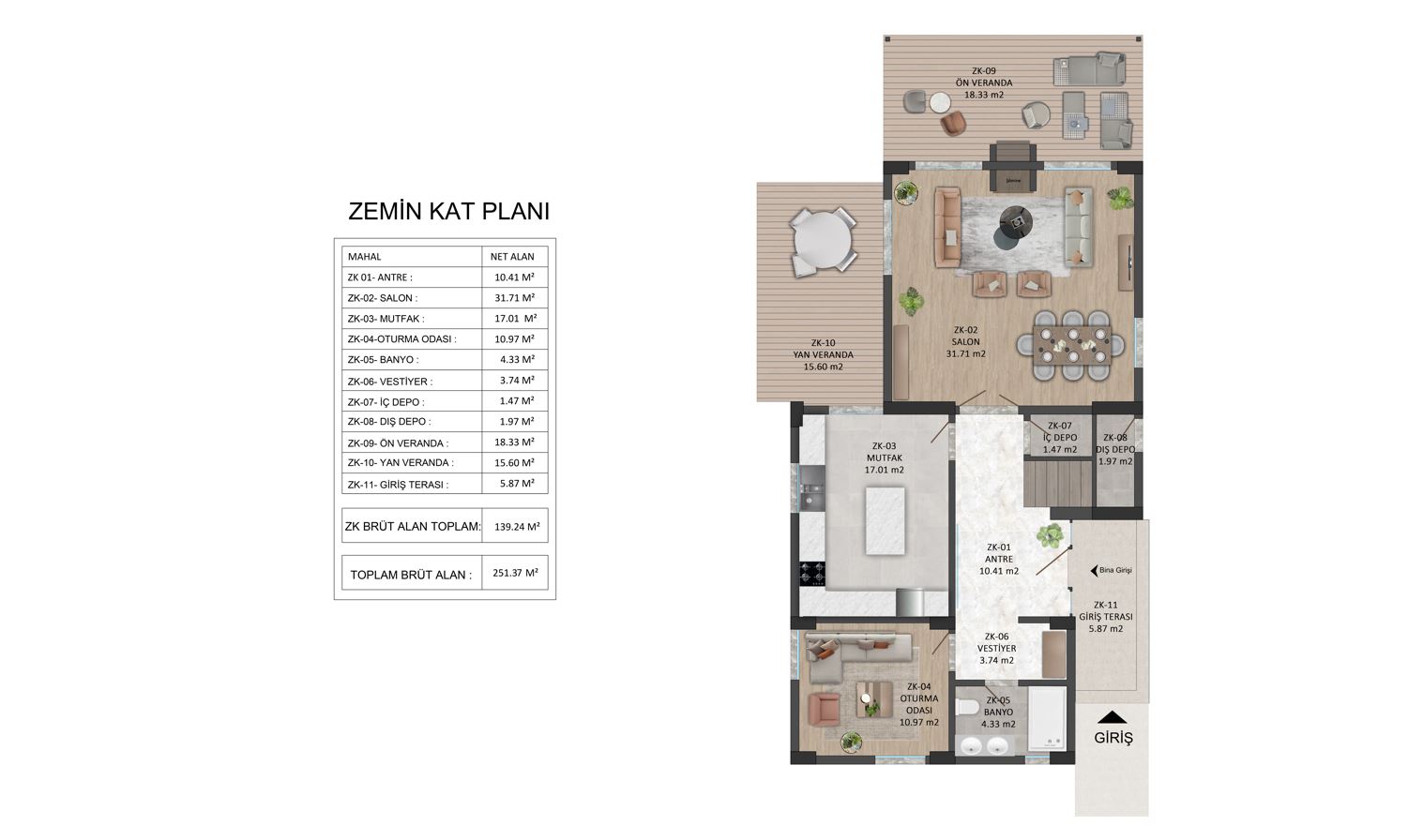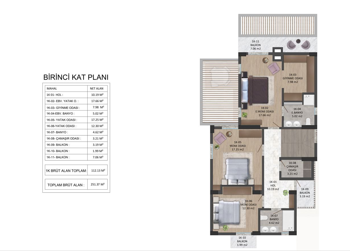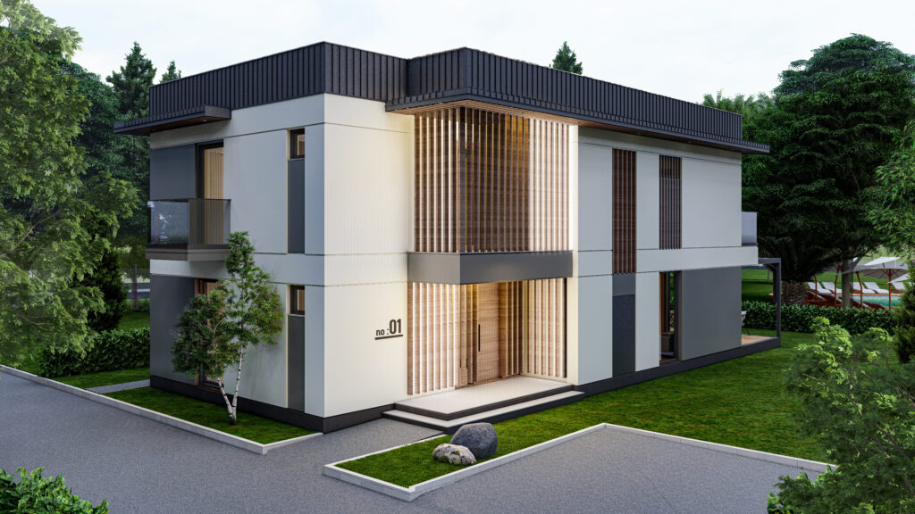 Каждая вилла представляет собой просторный триплекс (4+2 планировка, около 396 м2), продуманно разработанный для максимального комфорта и функциональности. Виллы приходят с частными садами, большими жилыми зонами, современными кухнями, несколькими ванными комнатами и балконами, предлагающими прекрасный вид на окружающую зелень. Каждый блок включает в себя гараж с двумя автомобилями и функции умного дома, которые повышают удобство и безопасность.