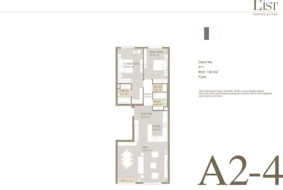 Nidapark предлагает разнообразный выбор апартаментов от 2 + 1 до 5,5 + 1 с размерами от 90 м2 до 663 м2. Единицы оснащены центральным отоплением, напольным отоплением, системами умного дома, частными складскими помещениями, балконами или террасами и панорамным видом на Босфор или Эмирганскую рощу. Макеты являются гибкими и адаптированы к современному семейному образу жизни.
