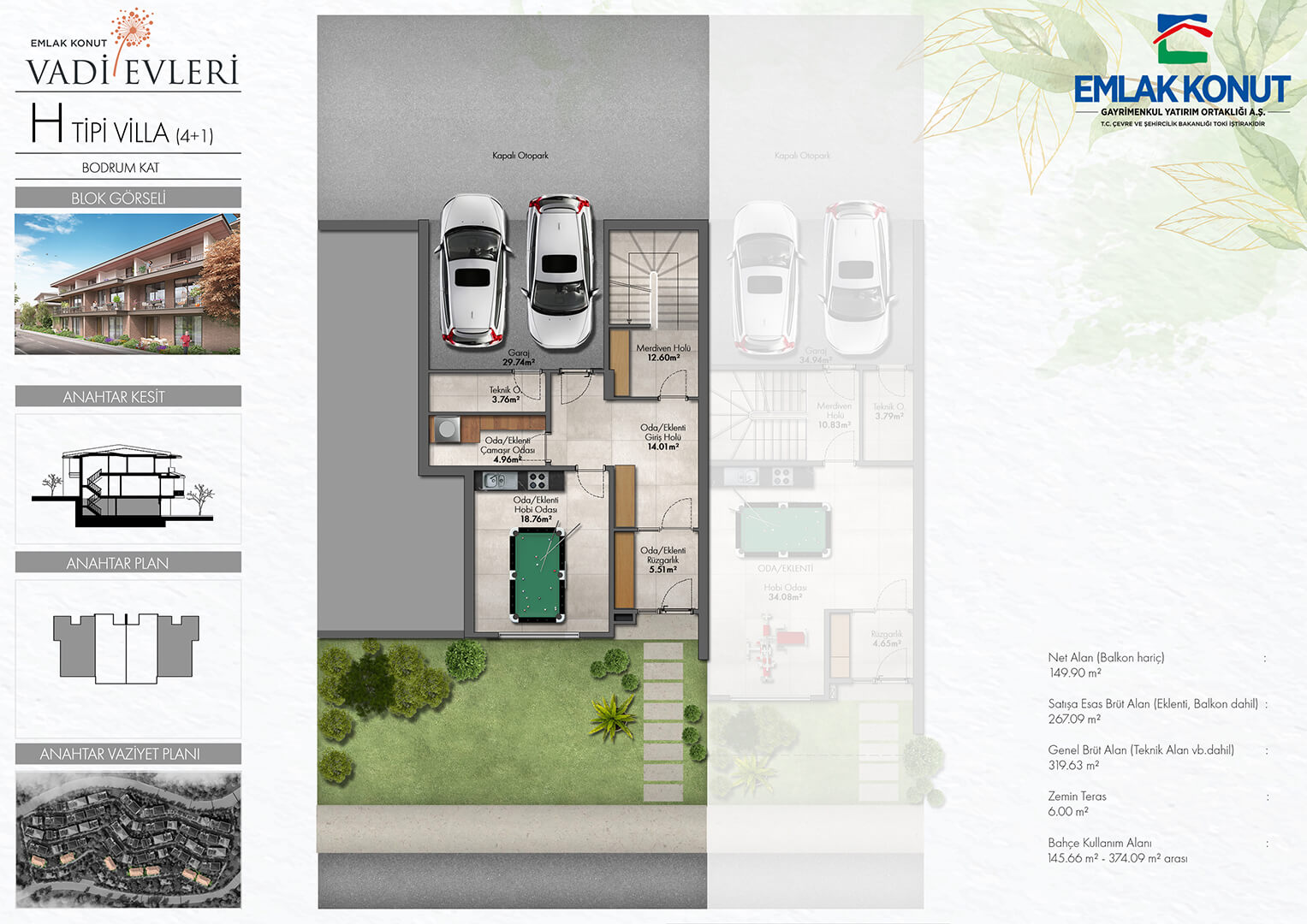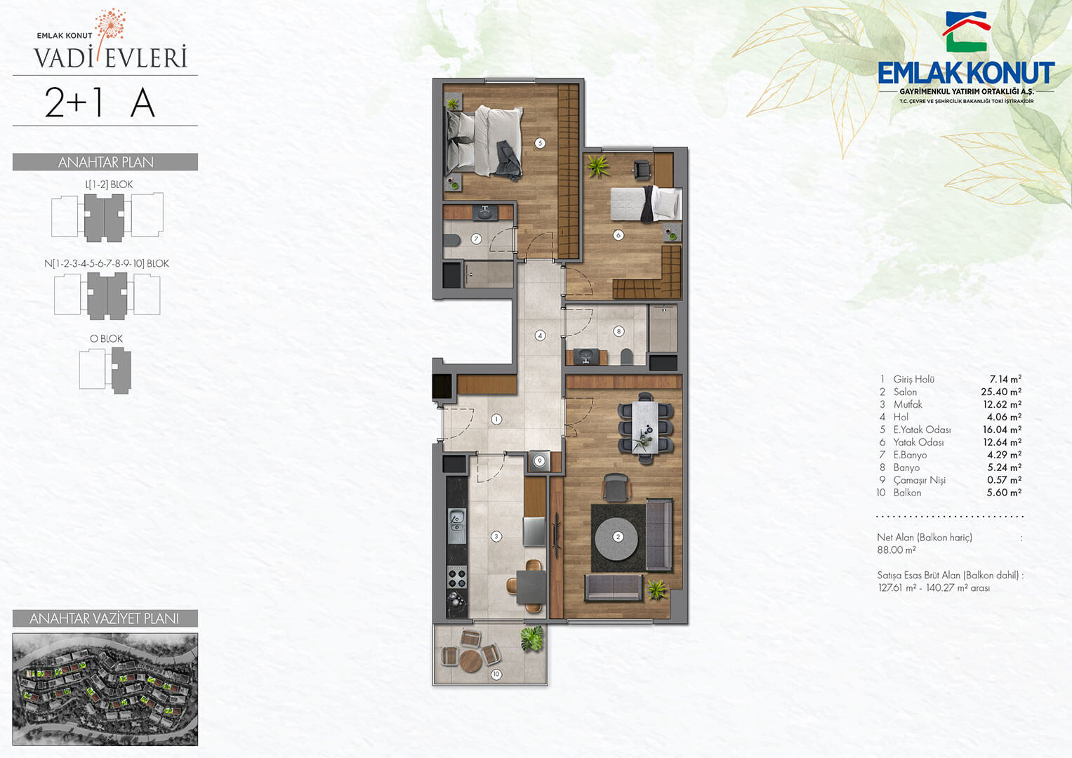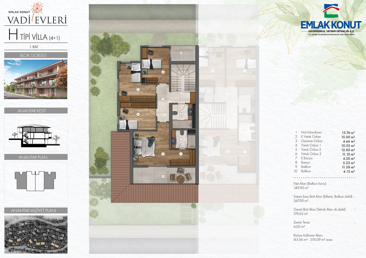 Vadi Evleri, разработанный Emlak Konut GYO в стамбульском районе Башакшехир (Бахчекент), представляет собой малоэтажное жилое сообщество, подчеркивающее горизонтальную жизнь в человеческом масштабе. Проект включает в себя сочетание апартаментов (2+1-5+1) и вилл-близнецов, расположенных рядом с зелеными коридорными пространствами, способствующими атмосфере жилой деревни.
