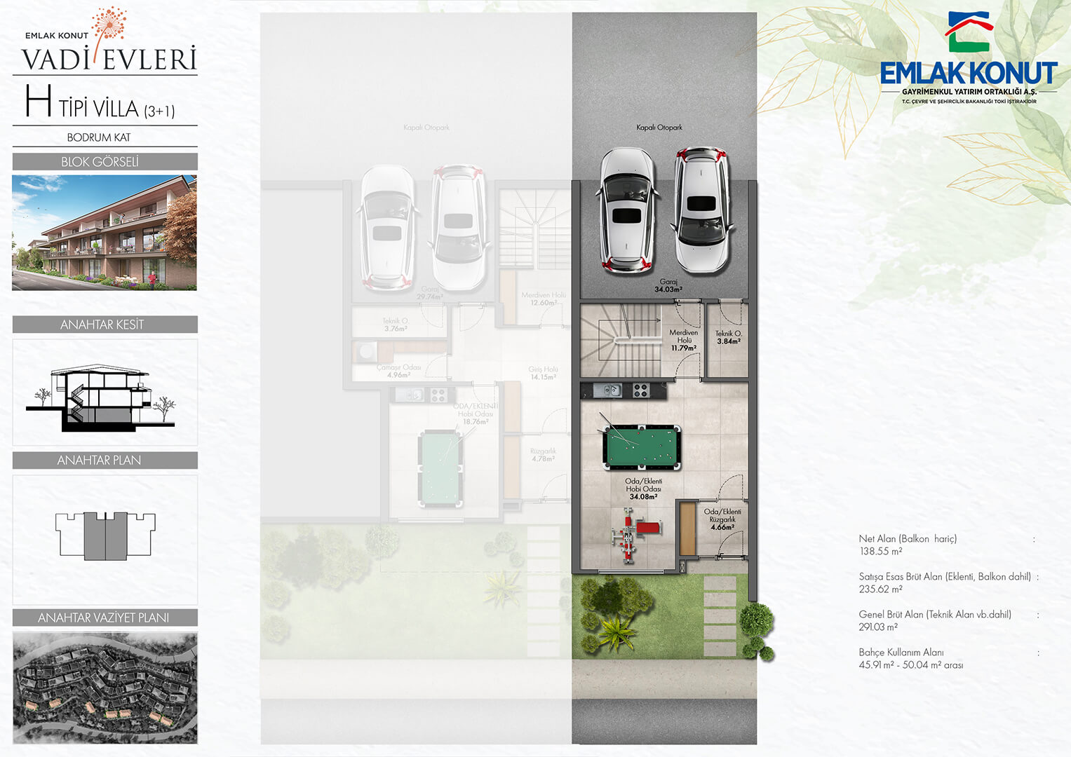 Вади Evleri способствует спокойному и семейному образу жизни благодаря тщательно отобранным функциям сообщества. Жители получают выгоду от обширных зеленых насаждений, пешеходных троп и ландшафтных садов, которые поощряют жизнь на открытом воздухе. Проект предлагает всестороннее множество оздоровительных и развлекательных удобств, включая открытые и детские бассейны, современный фитнес-центр, сауну и спа-центры. Семьи оценят специальные игровые площадки, социальные зоны и коммерческие пространства на месте, такие как кафе и магазины, которые способствуют взаимодействию и ежедневному удобству. Малоэтажный дизайн и концепция деревни обеспечивают спокойную атмосферу вдали от городской суеты, обеспечивая при этом доступ к основным услугам и транспортным связям.