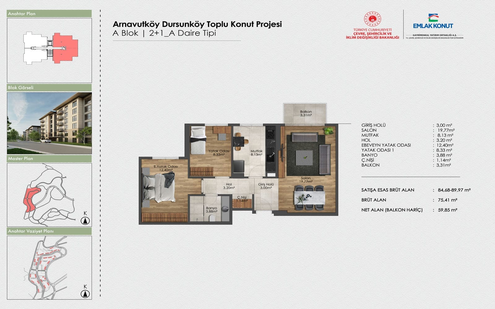Доступные блоки включают макеты 1+1, 2+1 и 3+1 в диапазоне от 58 м2 до 118 м2. Планы этажей продуманно разработаны для максимального дневного света, обеспечения функционального потока и включают балконы или террасы. Подразделения оснащены современной отделкой и интеллектуальными домашними системами, обслуживающими как одиноких, так и пары и семьи.